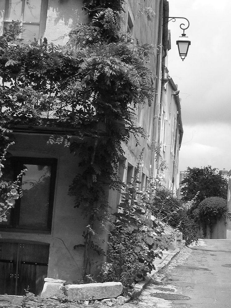 straatje op het platteland in Frankrijk zwart-wit, urban/street