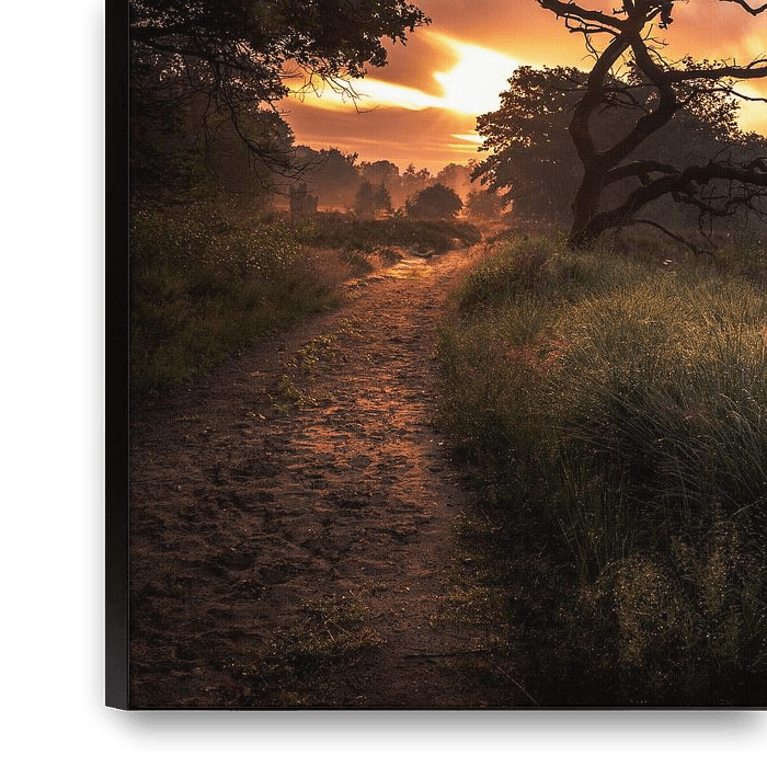 Bestelle dieses moderne Wandbild sunrise national park Sallandse heuvelrug von Martijn van Steenbergen als Reproduktion auf Leinwand, Alu-Dibond, als Poster, Fototapete oder Acrylglasbild.