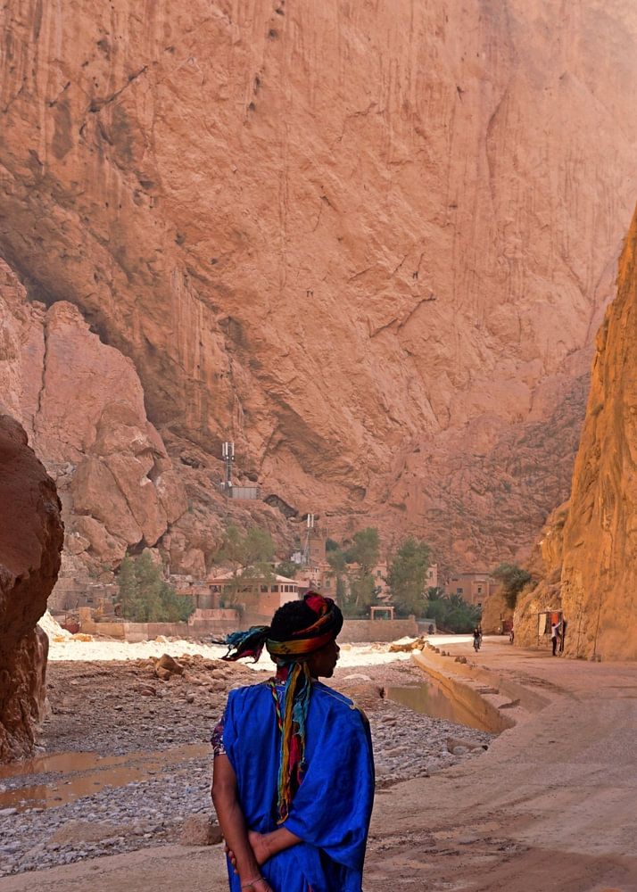 Ein überwältigender Felsvorsprung mit einem Wanderführer.