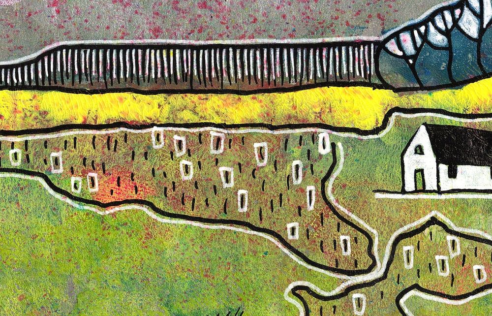 Original-Jahreszeiten-Landschaft mit Aquarell und Acrylstift gemalt