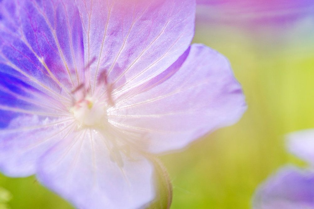 Detailaufnahme der blühenden Geranium rozanne, ergibt ein malerisches Bild mit viel Schärfe und Unschärfe, die Pflanzen geben meinem Garten lange Zeit Farbe