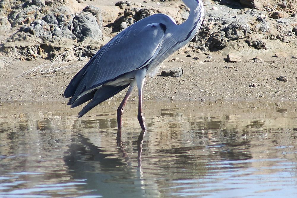Vogel, der nach Nahrung auf dem Fluss im Naturreservat in Taragonna, Spanien sucht, wo Natur noch unberührt und schön ist.