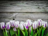 L4M11404309 WEISSE PAARSE Tulpen vor Holzwand