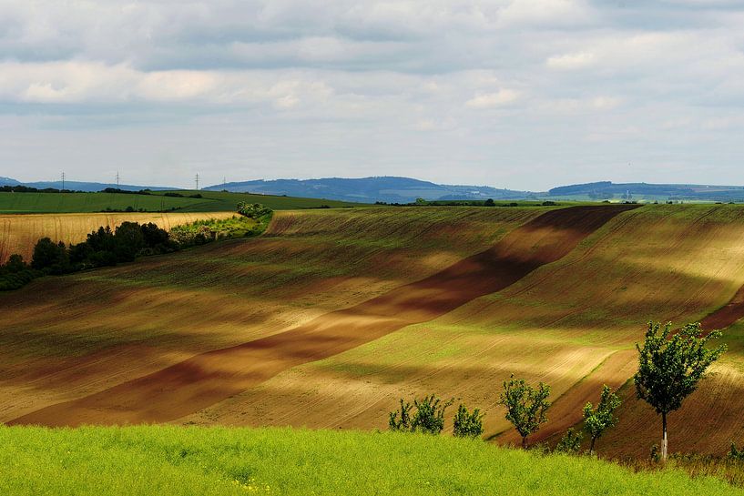 Bestelle dieses Landschafts-Wandbild wellige Felder von Steffi Hommel als Reproduktion auf Leinwand, Alu-Dibond, als Poster, Fototapete oder Acrylglasbild.