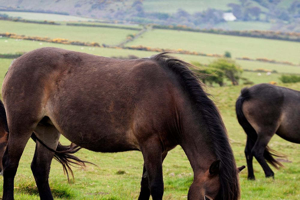 wilde Exmoor Ponys, Exmoor-Nationalpark, Grafschaft Devon, England, Großbritannien,