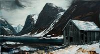 winterliche Fjordlandschaft mit Hütte