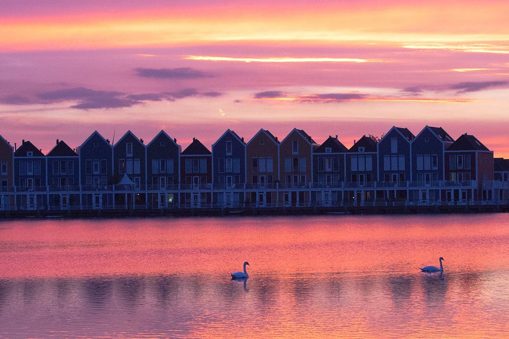 Zonsondergang in Houten bij de Rietplas en het vissersdorp de Goede Reede