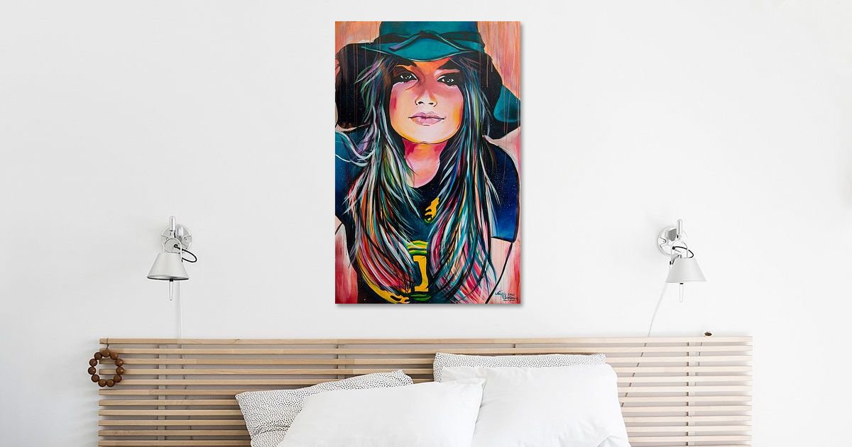 Ich habe meinen eigenen Stil gefunden, indem ich Frauen mit intensiven Gesichtsausdrücken male und dies mit viel Liebe zur Farbe tue. Farben, die glücklich machen, und Farben, die Lust machen, weiter zu suchen.