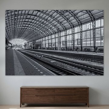 • Kundenfoto: Das Stadion De Kuip während einer Europa-League-Nacht in schwarz-weiß von Tux Photography, auf Leinwand