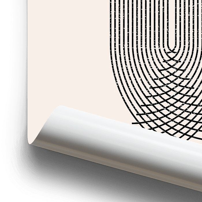 Bestelle dieses abstrakte Wandbild 1920er Jahre inspirierte schwarze Bögen auf Weiß von Dina Dankers als Reproduktion auf Leinwand, Alu-Dibond, als Poster, Fototapete oder Acrylglasbild.