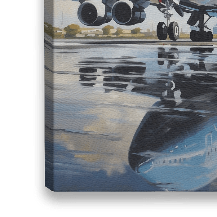 Das Kunstgemälde der 747 erweckt das majestätische Aussehen dieses kultigen Flugzeugs auf eindrucksvolle Weise zum Leben. Das Gemälde zeigt die Boeing 747 in ihrer ganzen Pracht, mit fließenden Linien, raffinierten Details und einem beeindruckenden Gefühl von Tiefe und Bewegung. Der metallische Glanz des Rumpfes, der elegante Schwung der Tragflächen und die beeindruckende Perspektive unterstreichen die Kraft, Präzision und Eleganz der Luftfahrt.