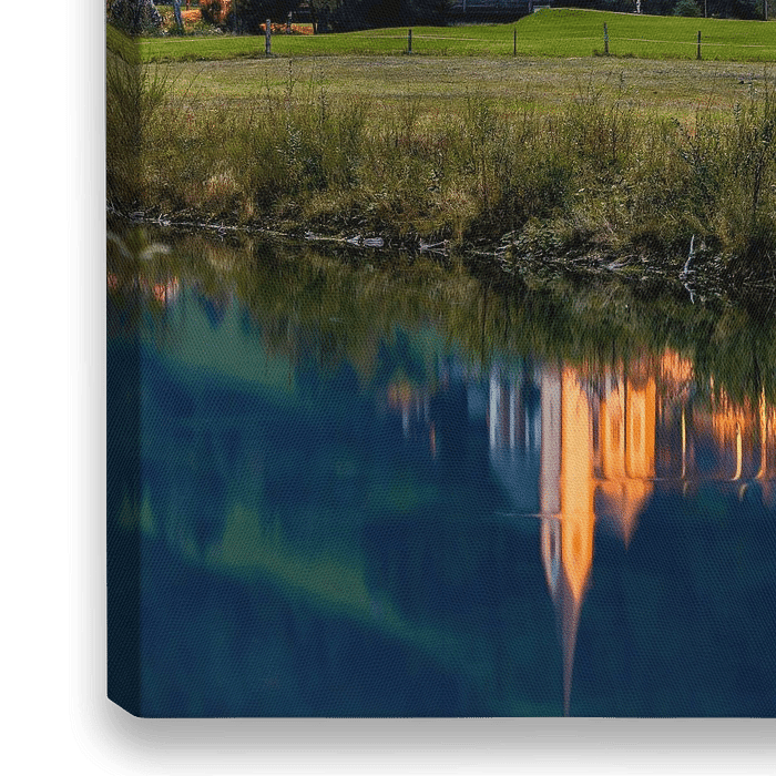 In dem malerischen Dorf fällt uns besonders die Kirche auf, die wir hier nachts mit ihrem Spiegelbild in der Möll sehen.
