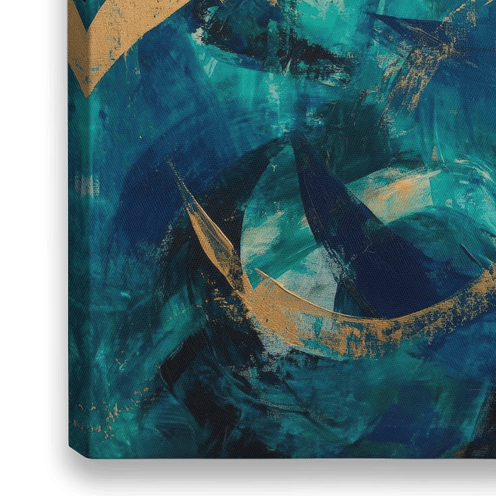 Bestelle dieses abstrakte Wandbild Abstrakte Farbdynamik in Blau-Gold von Poster Art Shop als Reproduktion auf Leinwand, Alu-Dibond, als Poster, Fototapete oder Acrylglasbild.