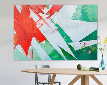 Mit dynamischen roten Akzenten und kraftvollen weißen Formen strahlt dieses Kunstwerk energiegeladene Kreativität aus. Die harmonische Verbindung von lebendigem Grün und kontrastreichem Rot zieht die Blicke an und belebt jeden Raum. Perfekt für ein modernes Wohnzimmer oder eine inspirierende Büroatmosphäre, bringt es frischen Schwung in Ihre Umgebung.