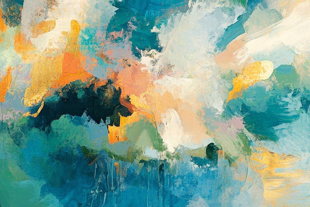 Ein lebendiges Spiel aus sanften Aquatönen und warmen Akzenten entfaltet sich, als ob die Natur ihre Energie in Farben transformiert. Diese faszinierende Harmonie aus Gelb, Blau und Weiß weckt Emotionen und lädt zum Träumen ein. Ideal für ein Wohnzimmer, wo sie Gespräche anregt und eine entspannte Atmosphäre schafft.