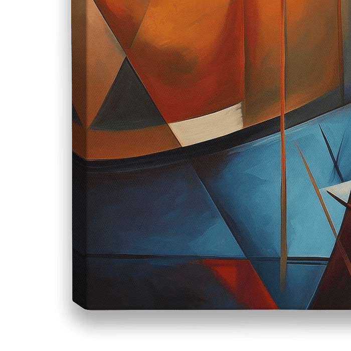 Dieses abstrakte, blau-rot-braune Panoramagemälde ist ein kraftvolles und modernes Kunstwerk, das auf abstrakte Weise mit Farbe, Form und Komposition spielt. In diesem Panoramabild verschmelzen geometrische und organische Formen zu einem ausgewogenen Ganzen, wobei jede Farbebene zur Tiefe und Bewegung des Bildes beiträgt. Die Farben…