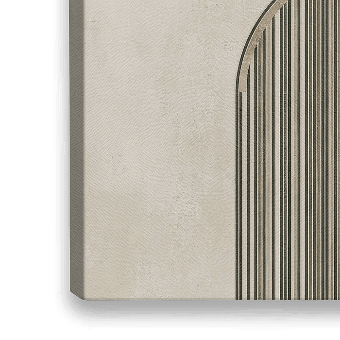 Ein harmonisches Spiel aus geometrischen Formen entfaltet sich hier: ein sanft leuchtender Kreis in tiefem Grün schwebt über einem anmutigen, geschwungenen Bogen, der sich mit klaren, vertikalen Linien durchsetzt. Diese melancholische Komposition strahlt Ruhe aus und lädt den Betrachter ein, über die Balance von Form und Farbe…