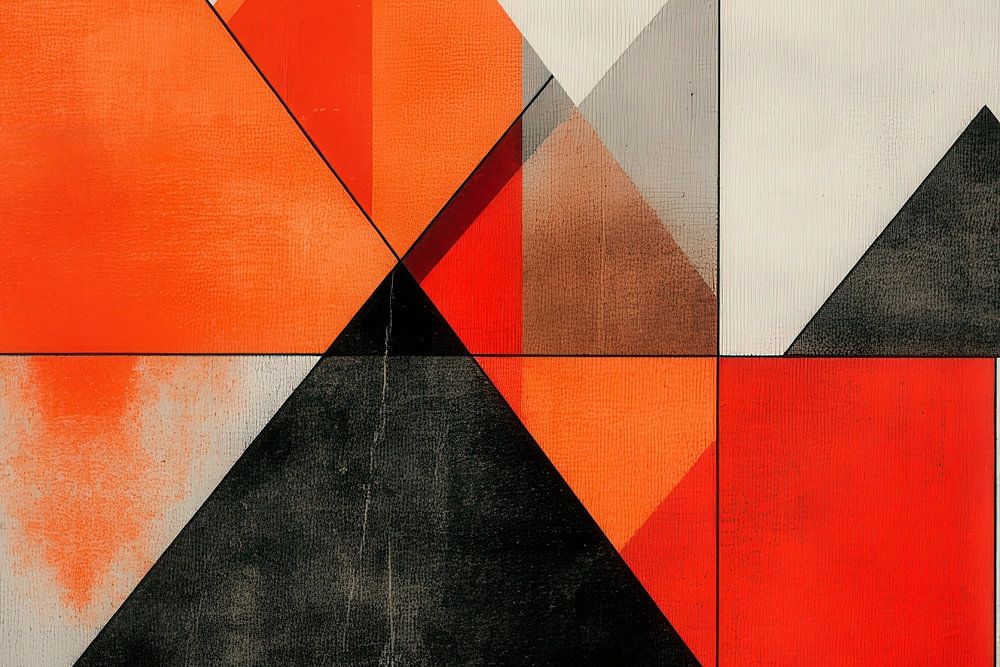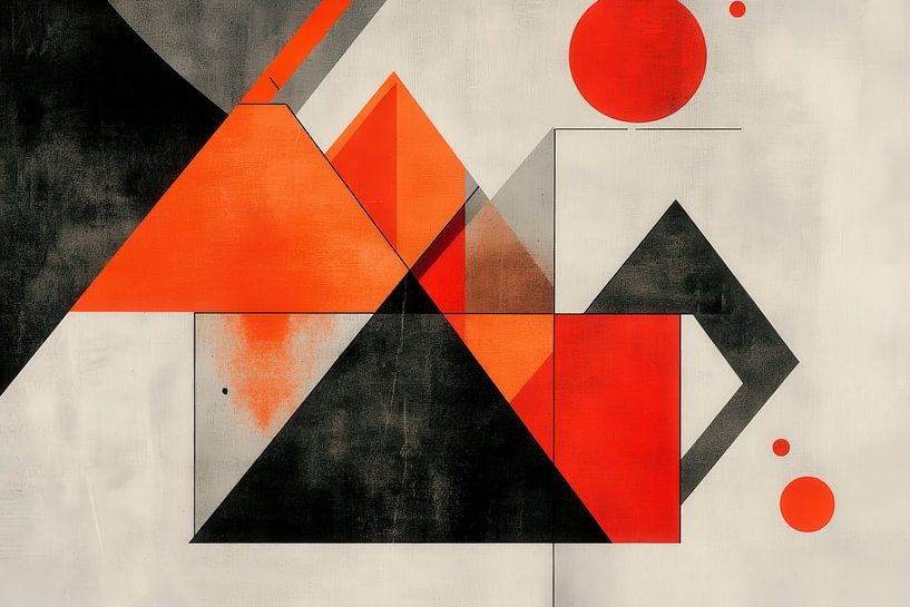 Energiegeladene Formen in kräftigen Rottönen kontrastieren harmonisch mit sanften Grautönen. Die dynamischen Dreiecke und kräftigen Kreise verleihen dem Raum eine moderne Note und regen die Kreativität an. Ideal für ein kreatives Büro oder einen inspirierenden Arbeitsbereich, wo Ideen sprudeln und Innovation gedeiht.
