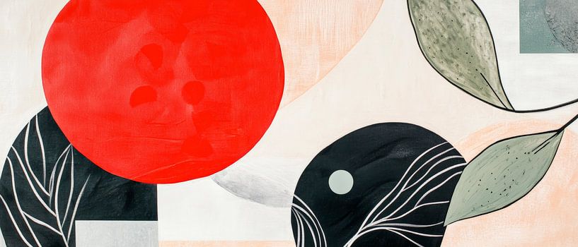 Bestelle dieses Stilleben Abstrakte Komposition mit roten Akzenten von Poster Art Shop als Reproduktion auf Leinwand, Alu-Dibond, als Poster, Fototapete oder Acrylglasbild.