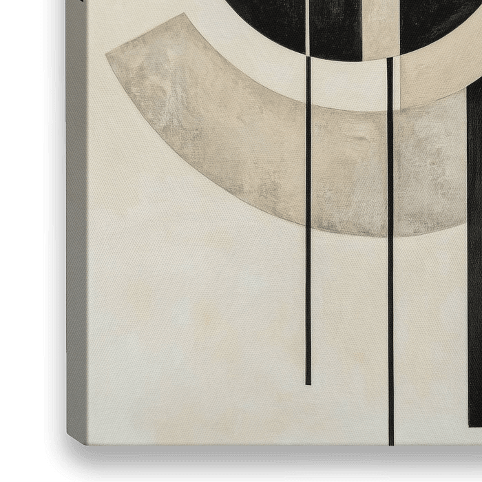 Ein faszinierendes Zusammenspiel aus geometrischen Formen in eleganten Schwarz- und Grautönen zieht sofort alle Blicke an. Die harmonische Balance zwischen kreisförmigen und geraden Linien strahlt zugleich Modernität und Ruhe aus. Dieses Kunstwerk passt perfekt in ein Wohnzimmer, wo es als stilvolles Highlight und Gesprächsanlass…