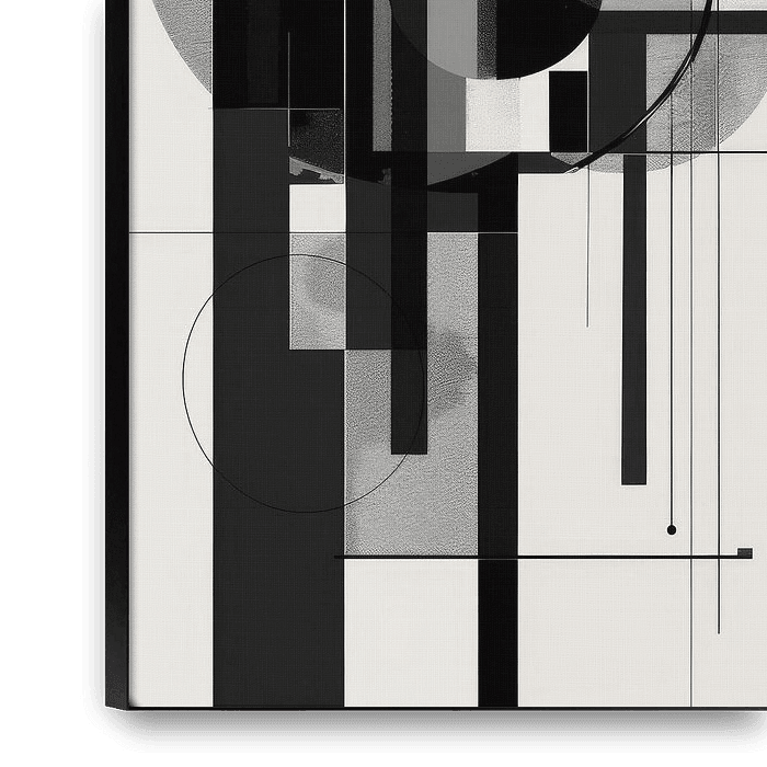 Dieses moderne Kunstwerk spielt mit kräftigen Farben und geometrischen Formen, um eine dynamische und energiegeladene Komposition zu schaffen. Die dominanten Kreise in Schwarz, Rot und Weiß, kombiniert mit Linien und Halbkreisen, erzeugen ein Gefühl von Bewegung und Spannung. Ideal für Liebhaber abstrakter Kunst, die klare Formen und…