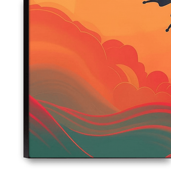 Ihre gewählte Kunst auf Leinwand, gespannt in einem Aluminiumrahmen. Schnell und einfach austauschbar für eine frische Ausstrahlung und ganz nach Ihren Wünschen.
