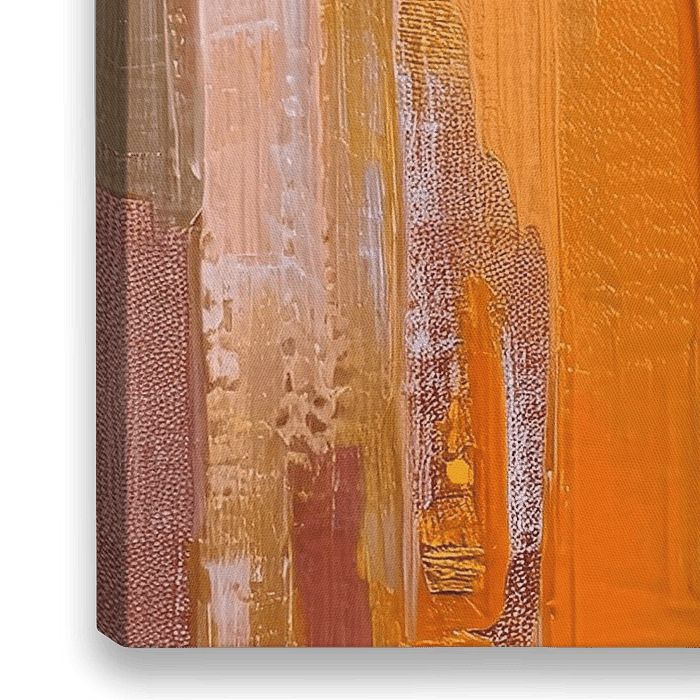 Abstraktes Gemälde mit warmen Gold- und dunklen Orangetönen.