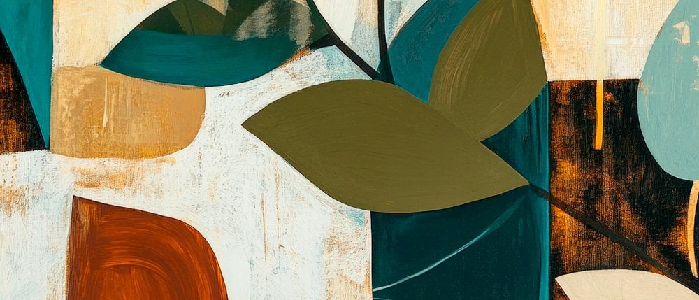 Sanfte Grüntöne und warme Erdtöne vereinen sich in harmonischen Abstraktionen von Blättern und Formen, die ein Gefühl von Ruhe und Natur vermitteln. Die dynamische Komposition strahlt Frische aus und eignet sich perfekt für die Küche oder das Wohnzimmer, um eine einladende und lebendige Atmosphäre zu schaffen.