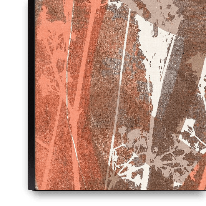Bestelle dieses Blumen-Wandbild Abstrakte Retro-Botanik. Blumen und Gras in Weiß, Terrakotta, Orange, Braun von Dina Dankers als Reproduktion auf Leinwand, Alu-Dibond, als Poster, Fototapete oder Acrylglasbild.