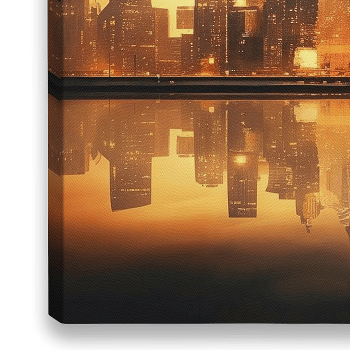 Bestelle das digitale Kunst Bild Abstrakte Skyline von Manhattan im Abendlicht von ARTemberaubend als Reproduktion auf Leinwand, Alu-Dibond, als Poster, Fototapete oder Acrylglasbild.