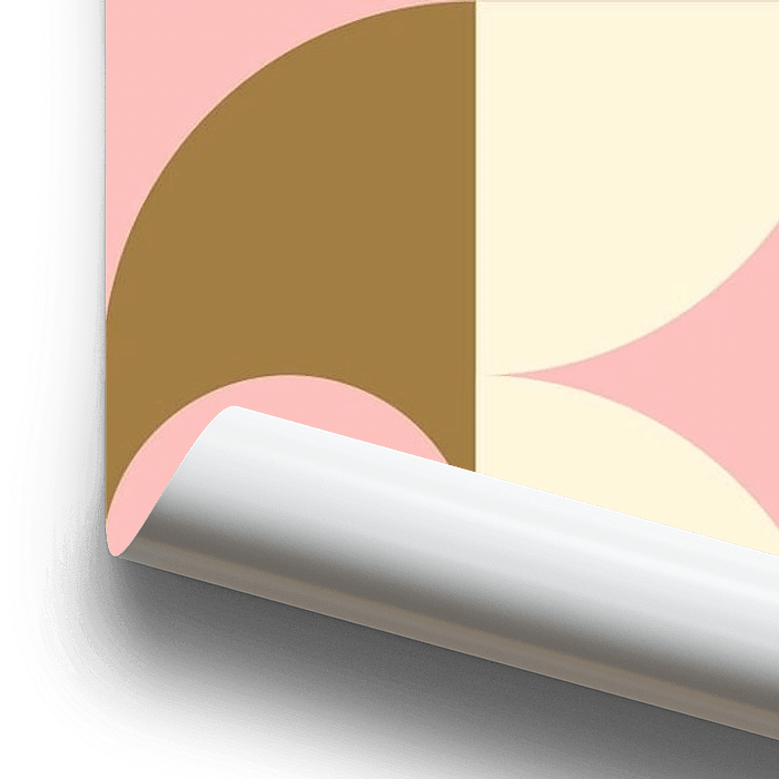 Über „Abstrakte geometrische Kunst im Retro-Stil in Gold, Rosa und Off-White Nr. 2“ von Dina Dankers