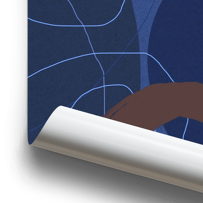 Bestelle dieses abstrakte Wandbild Abstrakte geometrische organische Formen und Linien in Blau und Braun. von Dina Dankers als Reproduktion auf Leinwand, Alu-Dibond, als Poster, Fototapete oder Acrylglasbild.