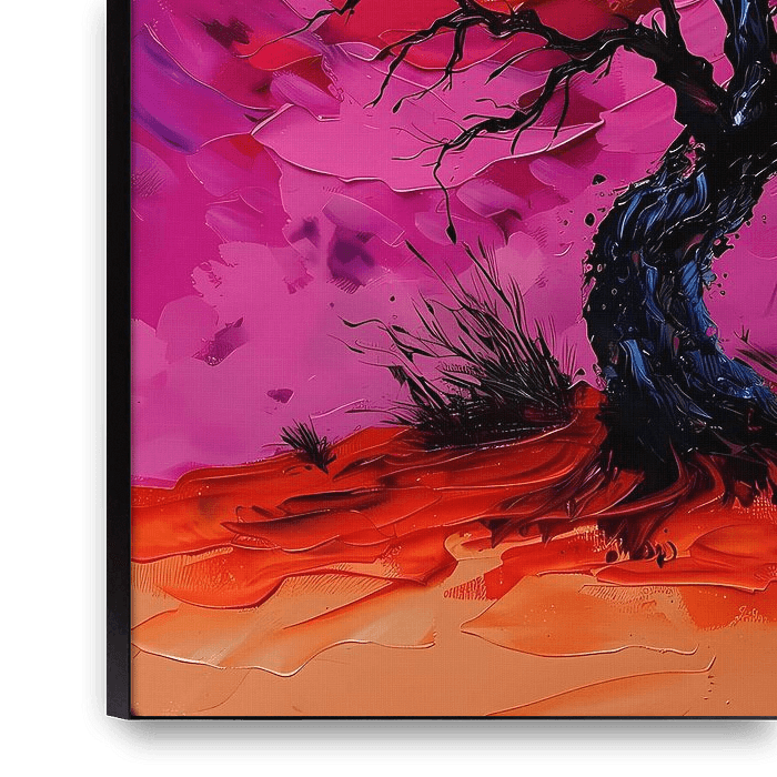 Dieses farbenfrohe abstrakte Gemälde zeigt einen beeindruckenden Baum bei Sonnenuntergang. Die leuchtenden Farben Rot, Gelb, Orange, Blau und Lila bilden ein dynamisches Ganzes, das jeden Raum erhellt. Das Kunstwerk eignet sich perfekt für moderne Innenräume und verleiht Ihrem Wohnzimmer, Esszimmer oder Büro einen lebendigen,…