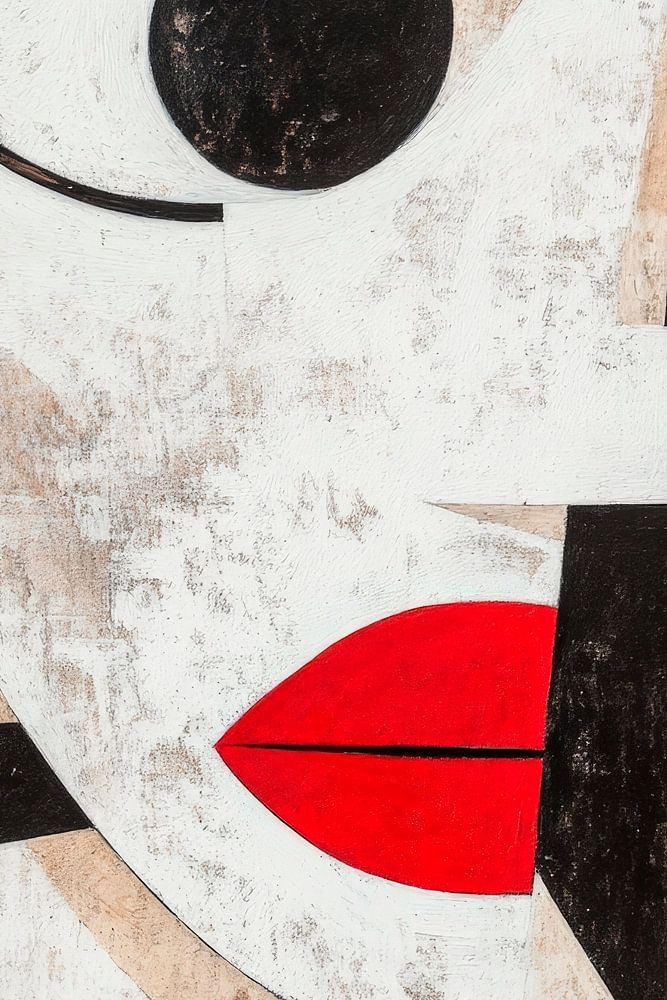 Bestelle dieses Porträt Abstraktes Porträt in Schwarz-Weiß mit Rot von Poster Art Shop als Reproduktion auf Leinwand, Alu-Dibond, als Poster, Fototapete oder Acrylglasbild.