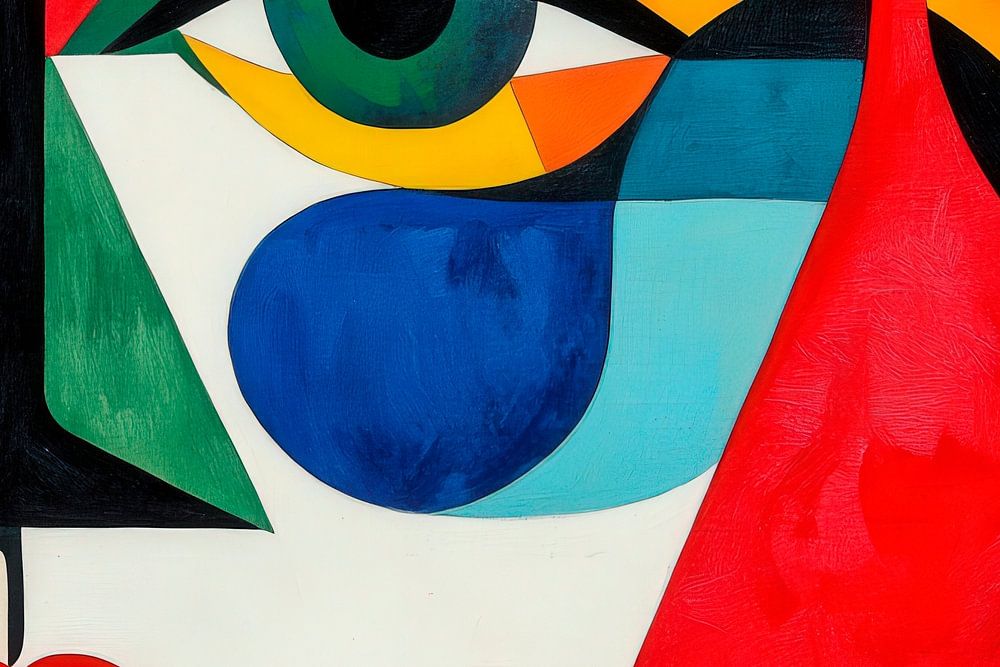 Ein fesselndes Spiel aus dynamischen Farben und geometrischen Formen verkörpert diese faszinierende Darstellung. Die ausdrucksstarke Gesichtszüge und die lebendige Kombination aus Rot, Blau und Gelb verleihen dem Raum eine einzigartige, künstlerische Note. Ideal für ein modernes Wohnzimmer, wo es die kreative Atmosphäre unterstreicht und Gäste begeistert.