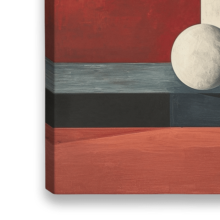 Abstraktes Rot - Dieses zeitlose Gemälde bietet eine kraftvolle Verschmelzung geometrischer Formen und einen kühnen Einsatz von Farben, die jeden modernen Raum erfrischen können. Es vermittelt ein Gefühl der Ruhe und Ausgeglichenheit durch die großen Flächen in Erdtönen, die mit einer markanten roten Fläche und einer subtilen weißen…