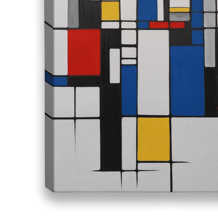 Bestelle dieses abstrakte Wandbild Abstraktion im Stil von Piet Mondrian von Art & Soul Creations als Reproduktion auf Leinwand, Alu-Dibond, als Poster, Fototapete oder Acrylglasbild.