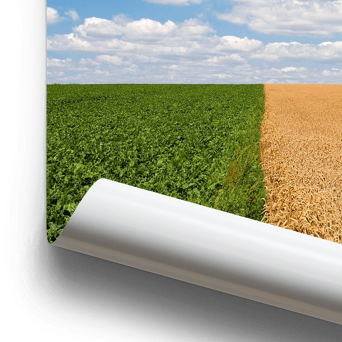 Eine schöne Aufteilung in 3 Ebenen von Pflanzen und Himmel. Blau mit Weiß, Grün und Gelb bilden fast perfekte Flächen in dieser schönen französischen Landschaft.