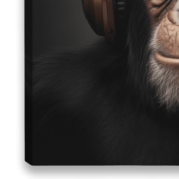 Bestelle das digitale Kunst Bild Affe mit Kopfhörer von YArt als Reproduktion auf Leinwand, Alu-Dibond, als Poster, Fototapete oder Acrylglasbild.