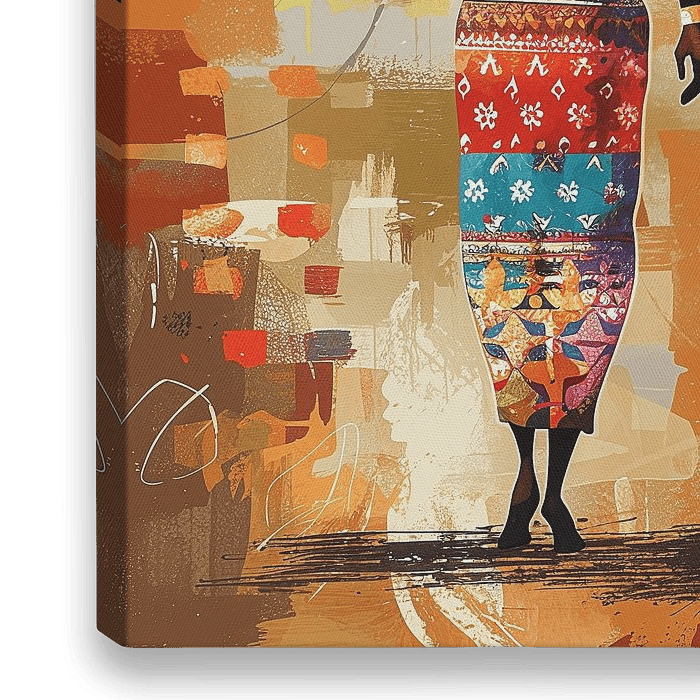 Bestelle dieses abstrakte Wandbild Afrikanische Anmut – Frauen in traditionellen Gewändern von Poster Art Shop als Reproduktion auf Leinwand, Alu-Dibond, als Poster, Fototapete oder Acrylglasbild.