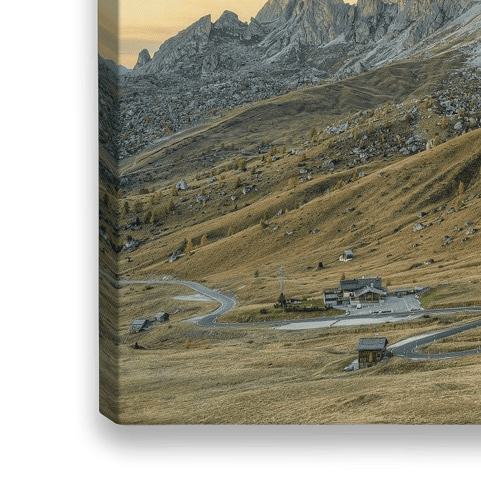 Bestelle das Foto Alpenglühen am Passo di Giau von Michael Valjak als Reproduktion auf Leinwand, Alu-Dibond, als Poster, Fototapete oder Acrylglasbild.