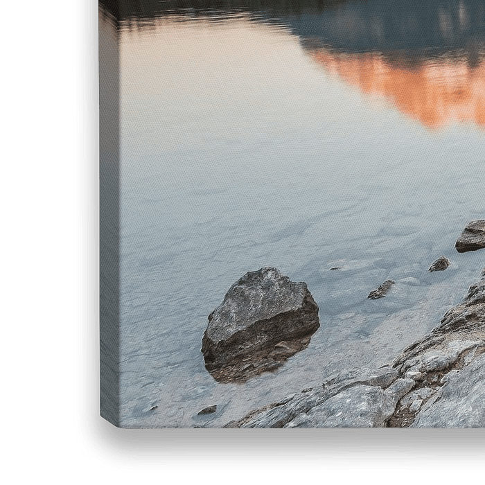 Blick vom Ufer des Eibsees in Richtung Zugspitze während die letzten Sonnenstrahlen des Tages die Berggipfel in ein rotglühendes Licht eintauchen (auch als Alpenglühen bezeichnet). Ein sehr faszinierendes Naturschauspiel.Fast genauso faszinierend finde ich das Grasbüschel auf den Steinen im Vordergrund; die Natur findet immer einen Weg.