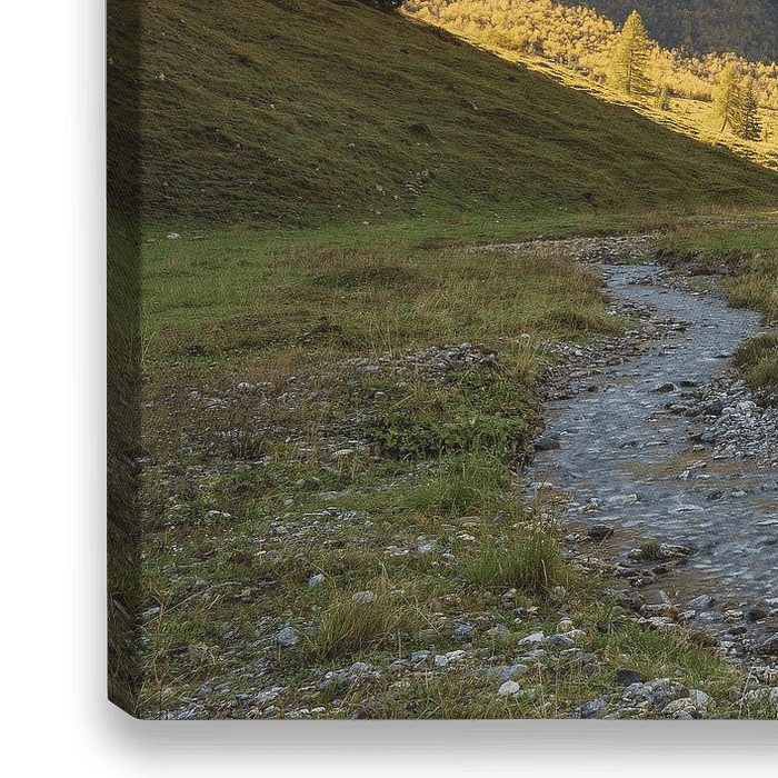 Wunderschön ist es im Engtal am Großen Ahornboden im Karwendel kurz nach Hinterriß in Österreich. Im Herbst dauert es lange, bis sich die Sonne über den Berg kämpft, die Schatten lassen sich schön ins Bild integrieren.
