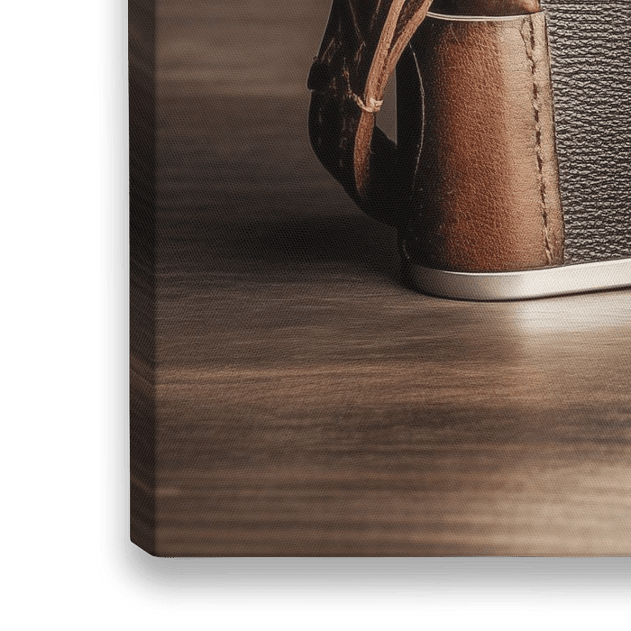 Alte Retro Kamera mit Lederriemen auf einem Holztisch