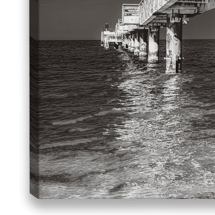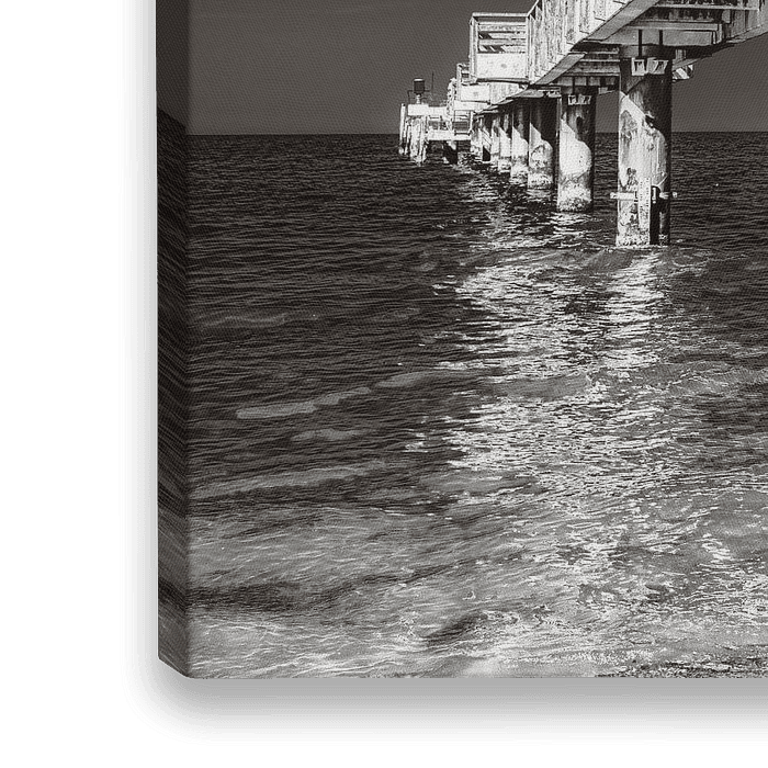 Die alte Seebrücke in Koserow auf der Insel Usedom an der Ostseeküste. Schwarz-Weiß Version.