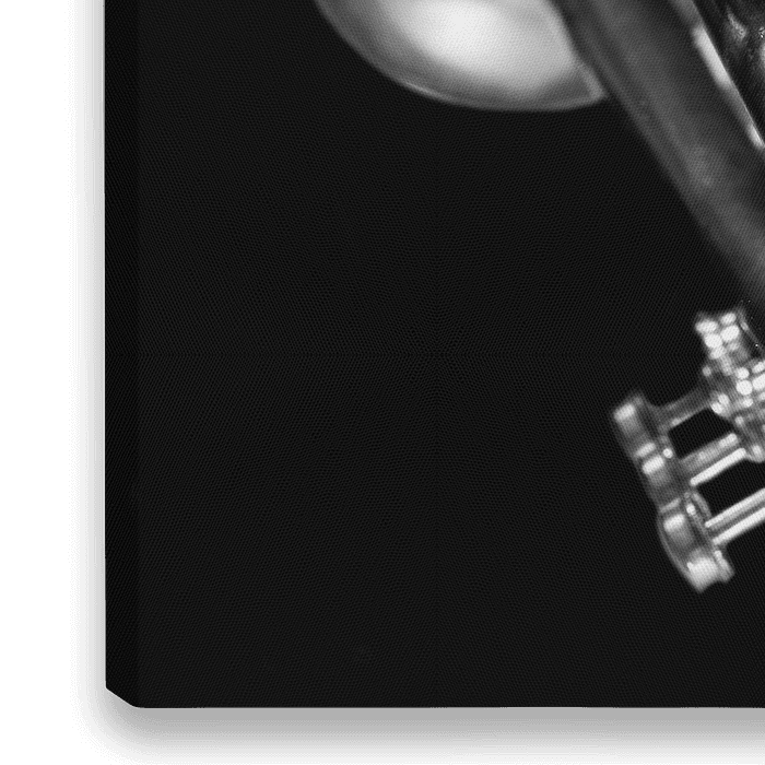 Bestelle dieses abstrakte Wandbild Alte Vintage Jazz Brass Trompete Musik Liebhaber Schwarz Weiß Reflexion von Andreea Eva Herczegh als Reproduktion auf Leinwand, Alu-Dibond, als Poster, Fototapete oder Acrylglasbild.