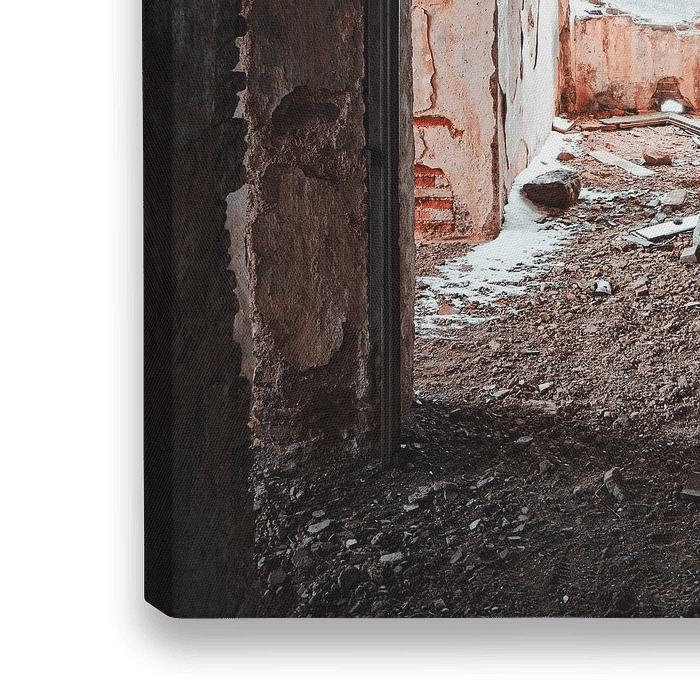 Dies ist ein Foto eines alten verlassenen Ganges in einem Kloster, das auf einem Hügel in der italienischen Landschaft steht. Ich habe das Foto aufgenommen, als es draußen stark blies und schneite. Wenn man durch das Fenster genau hinsieht, kann man in der Ferne noch ein schneebedecktes Dorf erkennen.
