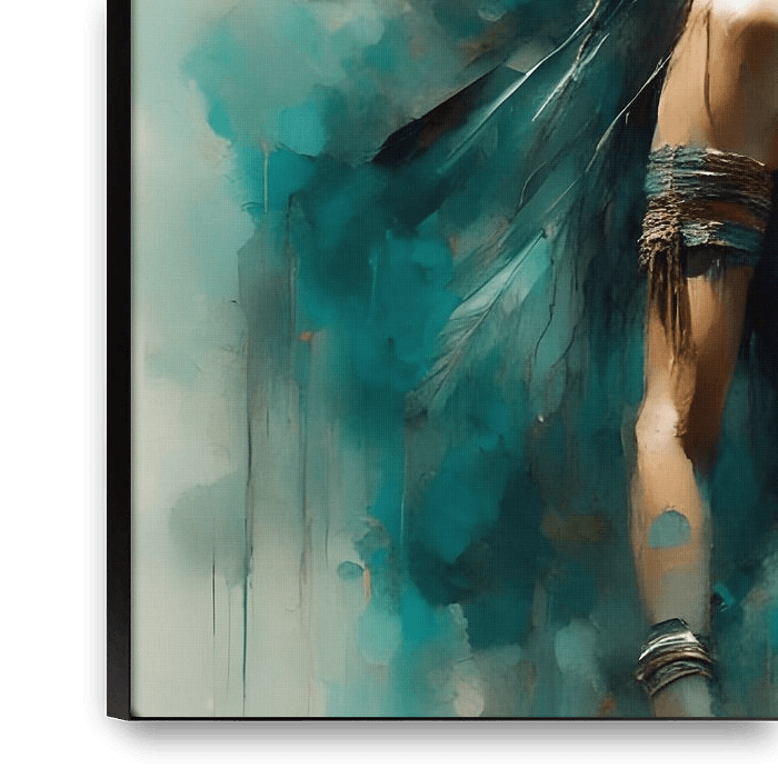 Feiern Sie die Stärke, Widerstandsfähigkeit und Schönheit der amerikanischen Ureinwohnerinnen mit diesem fesselnden Porträt. Dieses Kunstwerk ehrt ihre tiefe Verbundenheit mit dem Land und ihren unschätzbaren Beitrag zu ihren Gemeinschaften.
