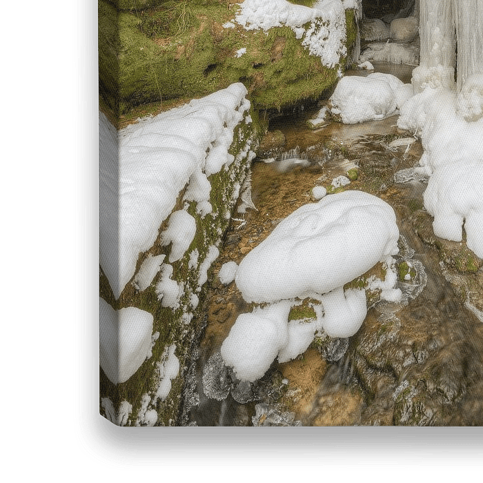 Der eingefrorene Amselfall im Basteigebiet in der Sächsischen Schweiz.