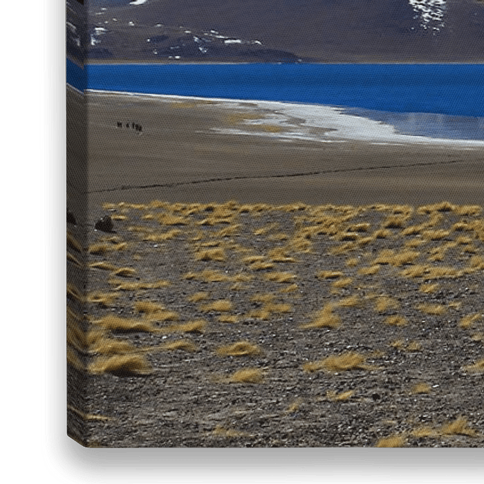 Panorama einer Lagune hoch oben in den Anden in der Nähe der Atacama-Wüste. Im Hintergrund ist ein Vulkan zu sehen.